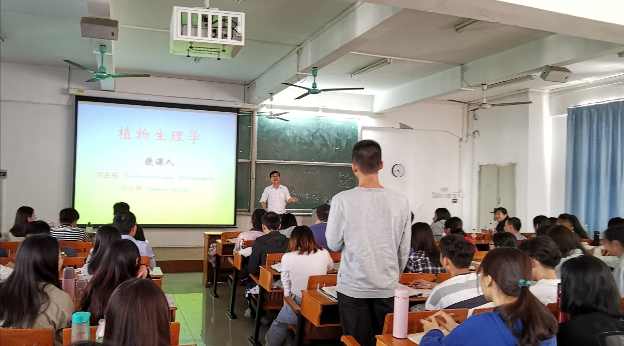 何生根教授首先言简意赅地与老师、同学们分享了他近三十年来宝贵的教学经验,他认为讲授一门课最为重要的是讲好“绪论”部分,让每位员工在刚开始接触这门课程的时候,大致了解课程的特点、核心知识点及学习模式。随后,他以实例和视频形式向大家深入浅出地介绍了《植物生理学》的内容概要及研究趋势。