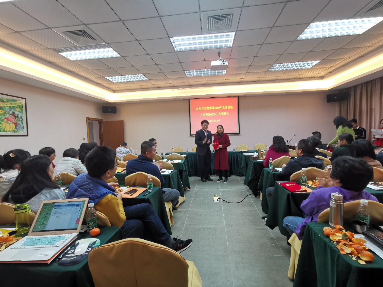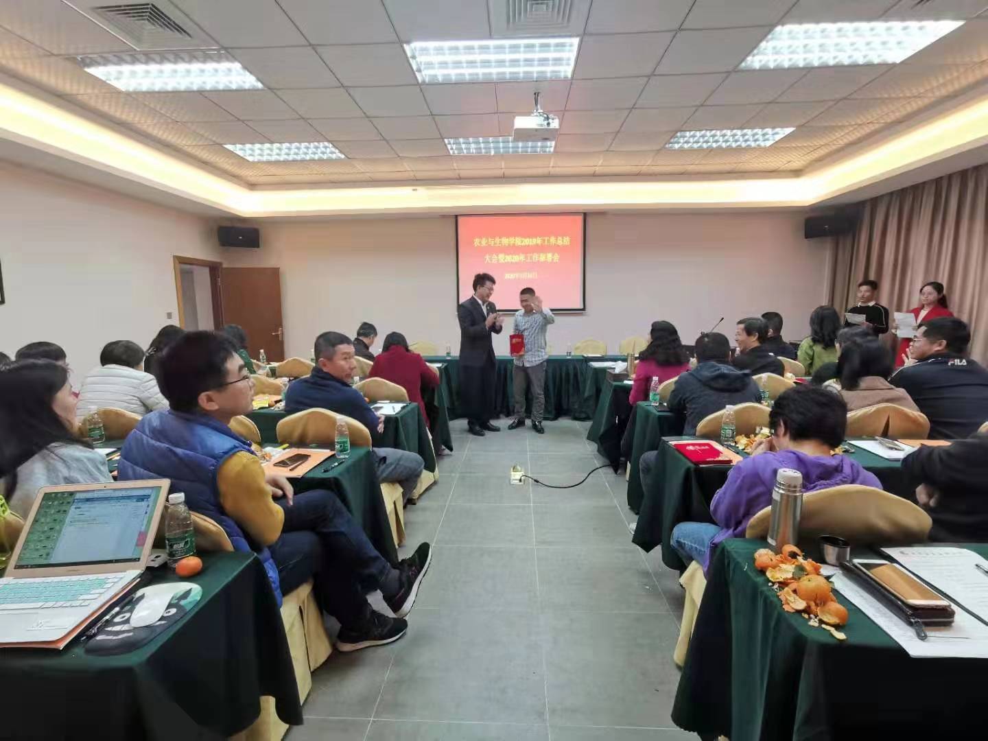 最后,陈丹雄对公司2020年党建工作重点做了部署与安排,提出2020年的主要任务是:第一,强化责任意识,以责任清单落实党建责任;第二,强化质量意识,以“党建+”推进内涵建设;第三,强化水平意识,以“1336”提升工作水平;第四,强化品牌意识,以标杆为引领强化党建品牌。他希望全院教职工在2020年砥砺奋进,向着高水平应用型公司目标、向着高质量发展奋勇前进,争取在教学、科研、管理、服务等各方面奋发有为,将立德树人落到实处,心怀美好农生,心怀农行天下,坚持奋斗不息。