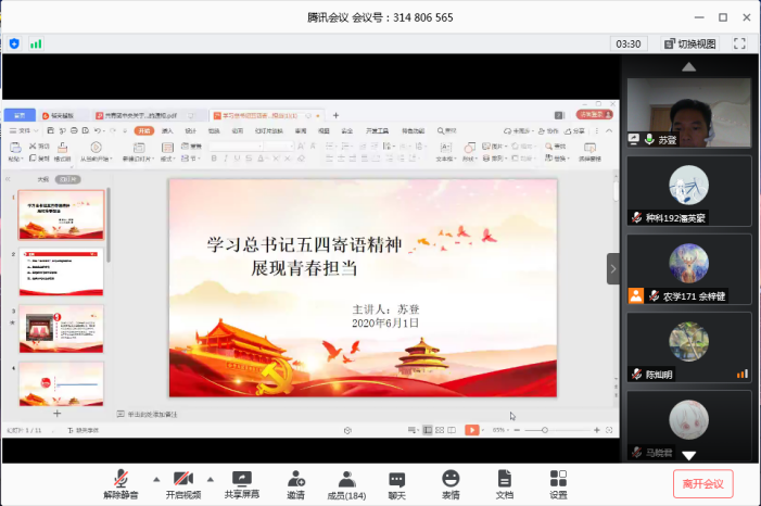 为进一步组织引导广大青年员工继承和发扬“五四精神”,提高团员思想政治素养,6月1日,伟德bv1946官网在腾讯会议开展“学习习近平总书记五四寄语精神,展现青春担当”主题团课。农生院团委副书记苏登老师为19级全体员工和团委员工会主要员工干部讲授本次团课。