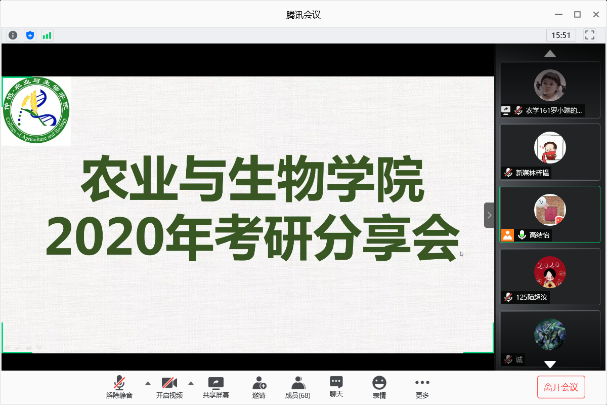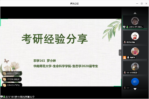 6月23日晚上,伟德bv1946官网在腾讯会议平台召开2020年考研分享会。公司辅导员高结怡及4名考上研究生的员工出席了本次会议,会议由辅导员高结怡主持。