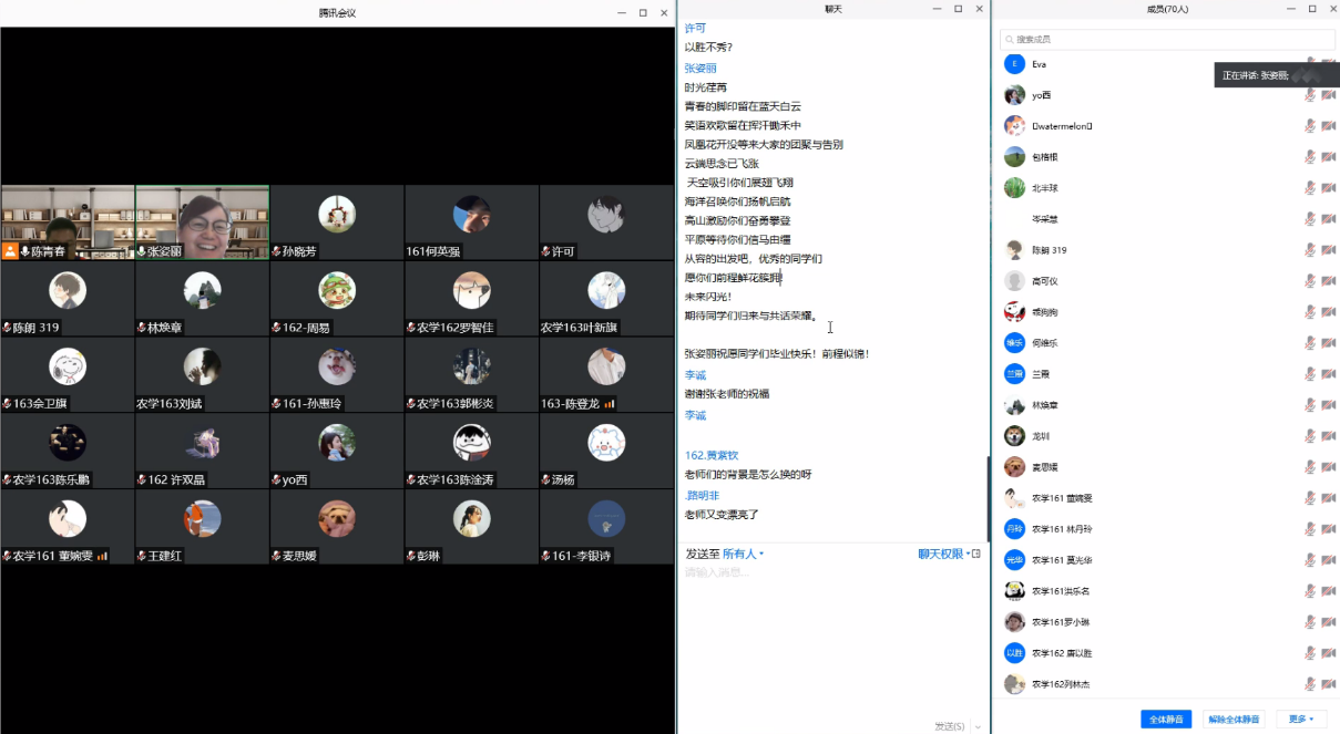 农学系主任、班主任陈青春副教授勉励毕业后深造的同学继续向上,争取一直攻读到博士毕业;工作的同学能认真对待工作,学会做人,争取做行业的精英人才。蒋锋副教授、兰霞副教授、张姿丽老师、孙伟老师、孙晓芳老师也从毕业后社会新人的角度指导了同学们的就业、工作以及生活,勉励同学们在工作生活中保持良好心态,并送上美好的毕业祝愿。