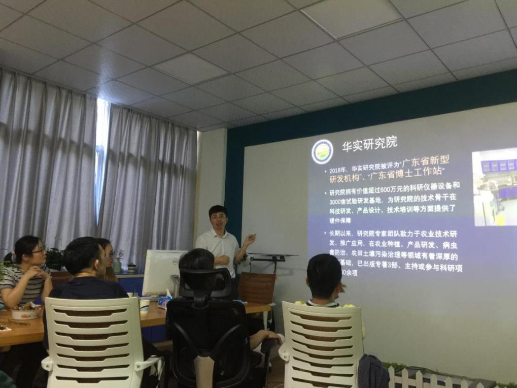华实研究院是植保系刘光华副教授创办的科技服务平台。619日下午,植保教师莅临该院进行了交流访问。刘光华经理陪同参观并进行了深入交流和会谈,刘经理从研究院的创建历程、资质力量,战略合作单位、研发中心建设、发展愿景及运营方向等方面作了详细的介绍。植保系教师听取汇报后,对研究院工作给予了高度的评价和赞扬。喻国辉教授表示,可在科技创新如病虫害纳米防治材料、土壤微生物环境改良、植物健康免疫系统、种植环境调控的研究研发等方面联合企业开展产学研合作。刘经理表示要强化研究院与公司的合作力度,在农业科技创新,科技成果转化,技术推广示范等方面群策群力,集中力量为企业及其他农业从业者提供服务、努力打造高品质的绿色农产品和一流的农业创新品牌,为农业产业发展做出积极贡献!