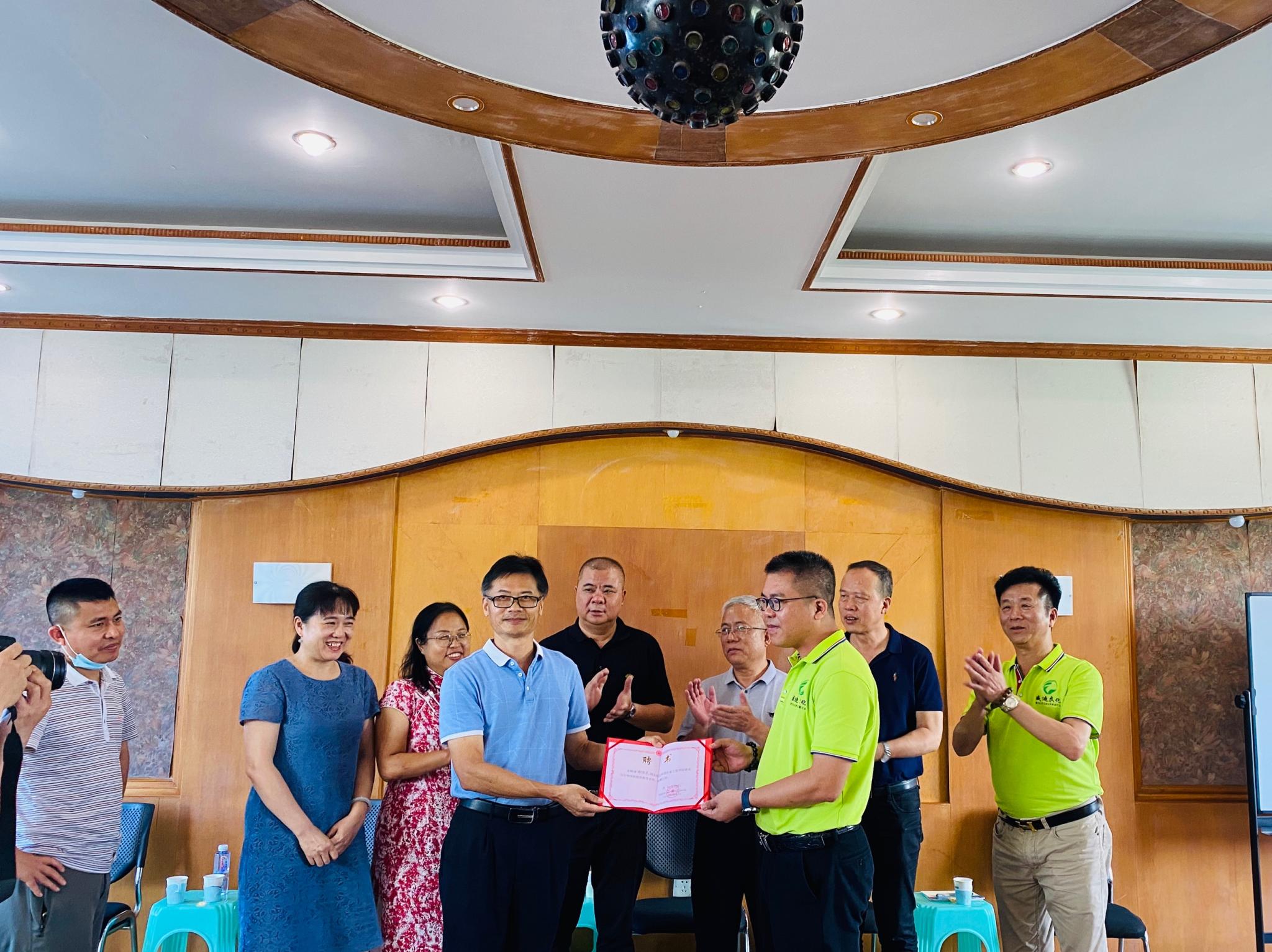 签约暨揭牌仪式上,郑奕雄经理和林齐沛总经理分别代表合作双方签约、揭牌;接着,郑经理还代表农生院向校外指导教师谢佳民、林裕正、李足成等3名专业技术人员颁发了聘书。随后,郑奕雄经理一行在林齐沛总经理陪同下考察了基地的实验室、农资产品仓库、员工住宿和就餐环境,并详细询问了基地开展植保无人机统防统控的作业情况,对基地齐全的实践教学设施深表满意和赞赏。