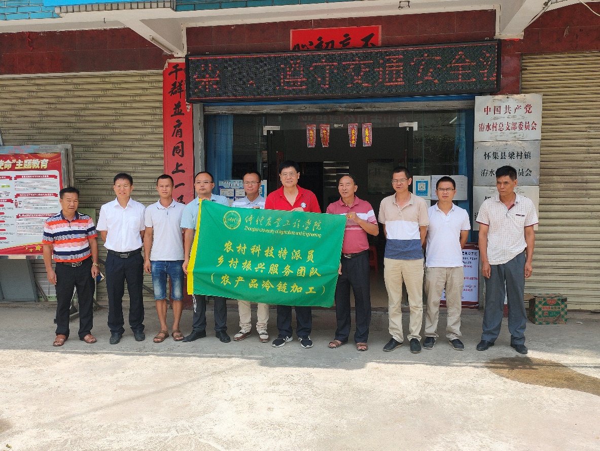 为积极响应《广东省乡村振兴科技计划》的号召,坚决落实省、市和公司服务“三农”的总体工作部署,作为108支“仲恺军团”的战斗队之一,农产品冷链加工服务团队与“三下乡”老员工乡村振兴服务队一行7人,在伟德bv1946官网教工第二党支部书记陈大清教授的带领下,于2020年7月20日上午汇集怀集县粱村镇洊水村村委会,开启了以现代农业为导向,产业扶贫助推洊水村农产品品牌建设的紧张有序工作。