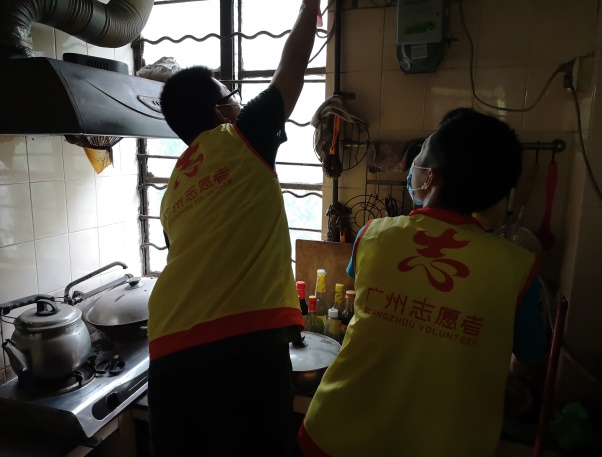 8月14日,队员们从黄花岗街社工服务站了解到,司徒奶奶(化名)是一名独居长者,患有精神类疾病,由于家中杂物过多,存在一定的消防隐患,并且严重影响到她的身心安全。了解到这个情况后,队员们主动与社工负责人联系,前往黄花岗街司徒奶奶家中进行探望,并帮助打扫卫生。