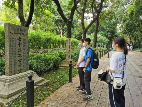 黄花岗七十二烈士墓园是为纪念孙中山先生领导的中国同盟会在广州三二九起义中牺牲的烈士而建虽然队员们已经了解过广州三二九起义烈士的壮举,但是在队员们实地参观黄花岗七十二烈士墓园后,才更加深刻的体会到在那段黑暗冰冷的时光里,打响反抗的枪声需要多大的勇气和代价。历史长河奔腾不息,烈士英魂浩气长存,英雄伟绩永垂不朽。不忘历史,缅怀先烈,吾辈自强!