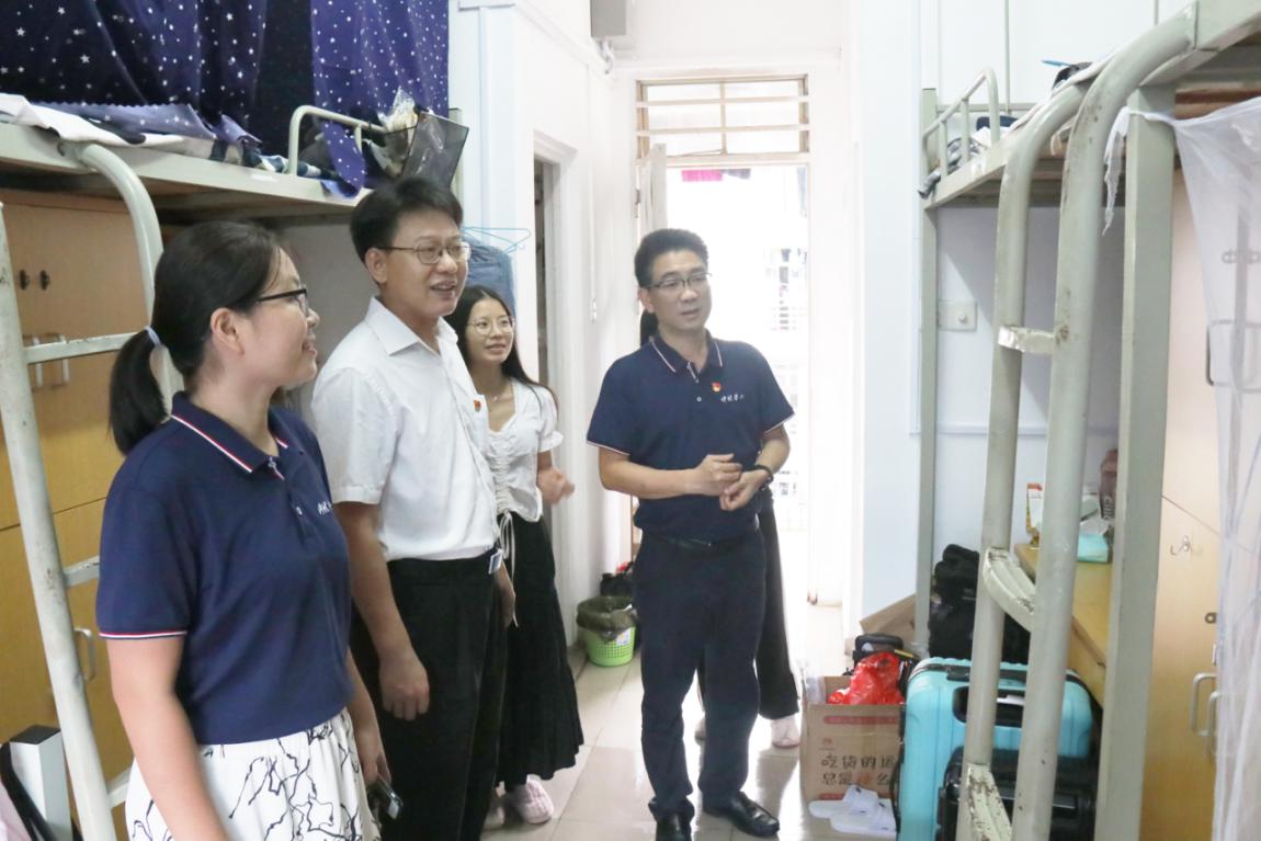 老师们重点对员工宿舍的安全隐患进行了排查。陈丹雄书记提醒同学们要时刻保持疫情防控意识,绷紧防疫抗疫这根弦不放松,平时在宿舍里要注意勤通风,并反复叮嘱同学们一定要加强安全防范意识,注意用水用电,务必消除任何安全隐患。周超雄副书记就电器的使用、收纳物品的技巧等方面给同学们提出了建议,并鼓励同学们合理安排时间,养成良好的生活习惯,为自己与同学们营造一个安全、健康、舒适的学习和生活环境。