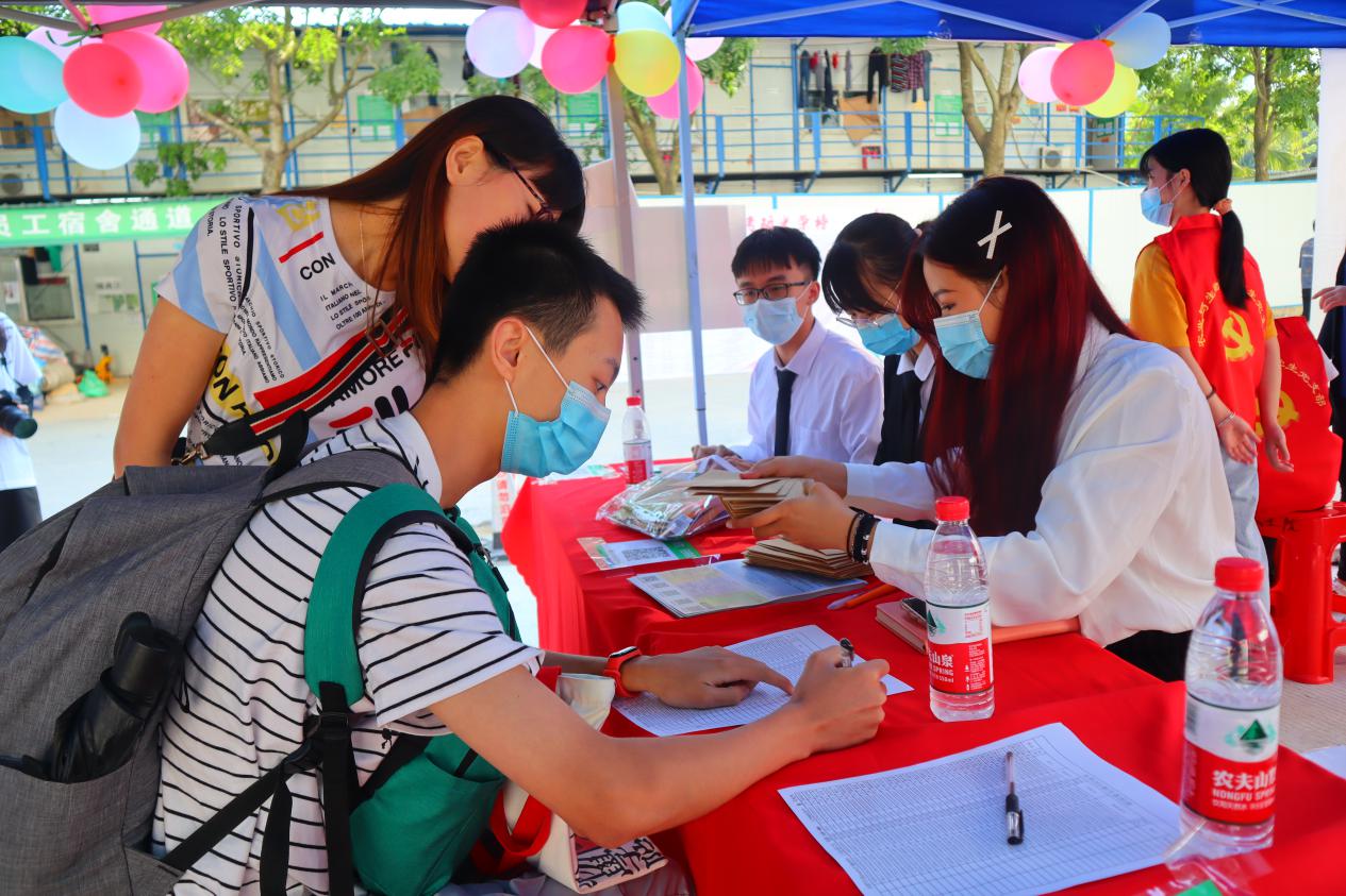 当天一大早,公司党总支书记陈丹雄、经理郑奕雄、党总支副书记周超雄,辅导员苏登、高结怡、孙晓芳来到新生报到现场看望新生、参加到迎新工作中。