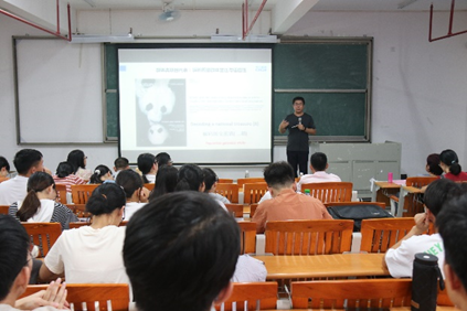 赵经理以自己研究的群体类项目为例,给大家解析了熊猫濒危背后的关键科学问题,同时,分享了科研论文撰写过程的发现及感受。最后,他以“必须不停奔跑,才能留在原地。”,与在场师生共勉,并希望同学们能成为一个自由、真实、骄傲的人。