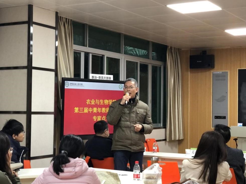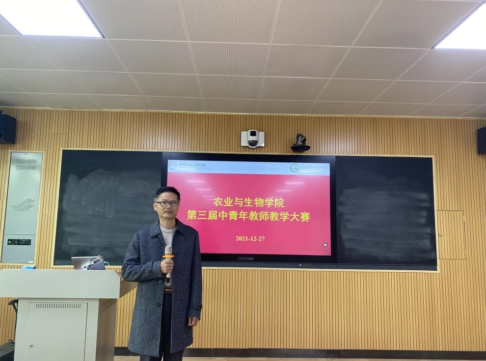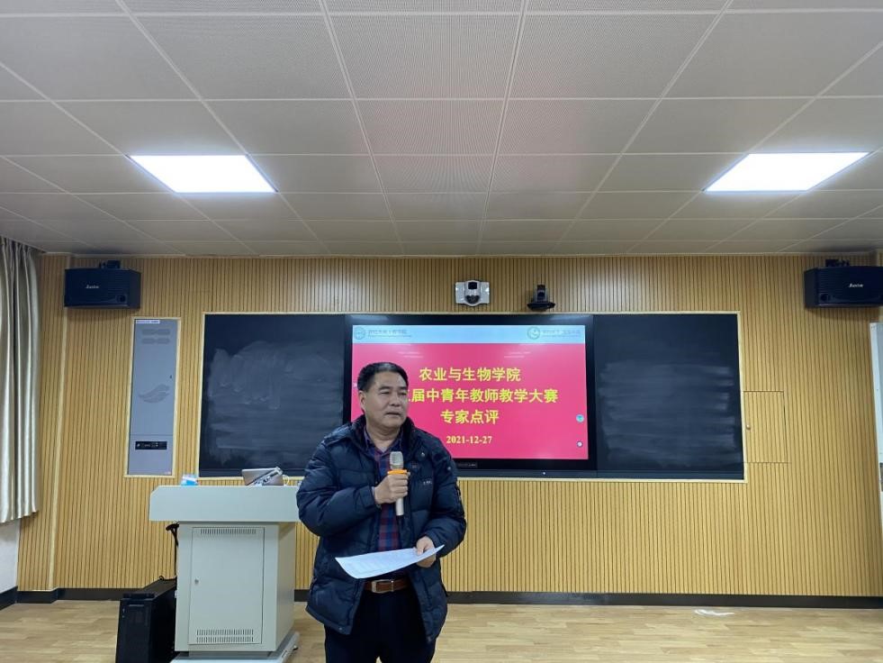 点评环节,专家们热情洋溢为比赛选手指点迷津。专家组长石玉强处长充分肯定本次比赛的精心组织及参赛者的精彩讲演,他指出:本次比赛参赛选手都做足准备凝练打磨、苦下功夫力展才华,但还需要从如何选择一个竞赛教学节段、课程思政元素的渗透与融合等方面进一步完善授课内容和打磨课程PPT,在比赛现场诠释与表达方面继续提升授课质量,力争在全校比赛中取得优异成绩。评委郑奕雄经理站在课程思政和建设新农科的高度出发,对每名参赛教师说课中的优缺点一一进行点评,提出完善课件和演讲的指导性意见。评委邓奋敢副主席充分肯定了本次比赛的组织、动员及参赛等环节的准备工作,同时也提出宝贵的意见建议,希望晋级参赛教师继续精细准备、赛出风采、赛出水平。