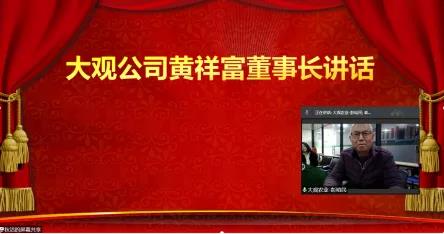大观公司黄祥富董事长发表讲话。他表示近几年深感科技创新对企业、行业和国家发展的重要意义,希望以后跟公司、公司与何生根教授科研团队开展更多、更深入的合作,并期待更多优秀的员工加入大观公司,为支持企业科技创新和不断发展壮大贡献才智。