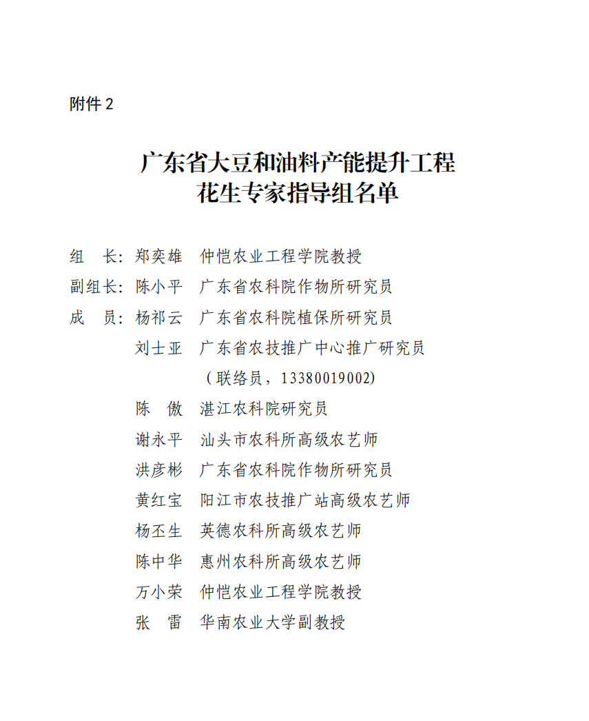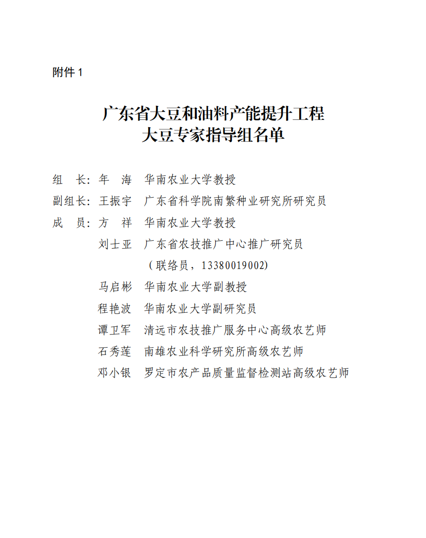 为贯彻落实党中央、国务院决策部署,强化我省大豆油料扩面积、提产能、增效益技术支撑,切实抓好大豆油料生产指导工作,更好发挥专家“智库”作用,广东省农业农村厅决定成立广东省大豆和油料产能提升工程大豆、花生2个专家指导组。专家指导组成员自觉履行职责,积极开展工作,为促进我省大豆油料产业提质增效和农业农村经济发展作出贡献。