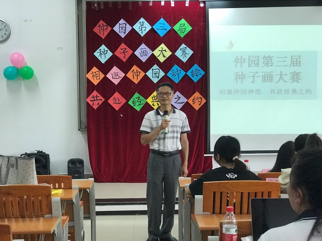 郑奕雄为大赛致辞。他指出制作种子画需要注重细节,像艺术家一样雕琢入微,使作品栩栩如生。同时他感谢公司、企业等各个单位的关心、关注与支持。种子画大赛是个综合性活动,将德、智、体、美、劳五育融合在一起,给予同学们施展创新能力与动手制作能力的机会。之后更解答了同学们关于制作种子画的相关问题。