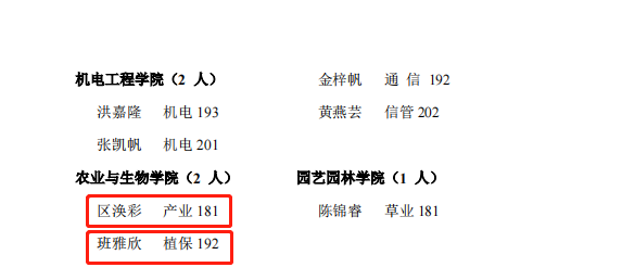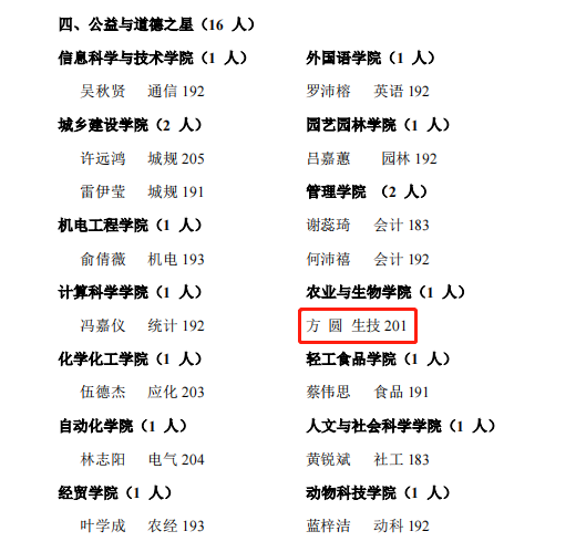 伟德bv1946官网共有7名学子被评为“百名优秀学子”。其中,产业181区涣彩、植保192班雅欣被评为“学习之星”称号,生技201李宇锋被评为“自强之星”称号,生技192黄杰豪被评为“创新创业之星”称号, 生技201方圆被评为“公益与道德之星”称号,生科191肖祥志、产业191梁诗桦被评为“文体与实践之星”称号。