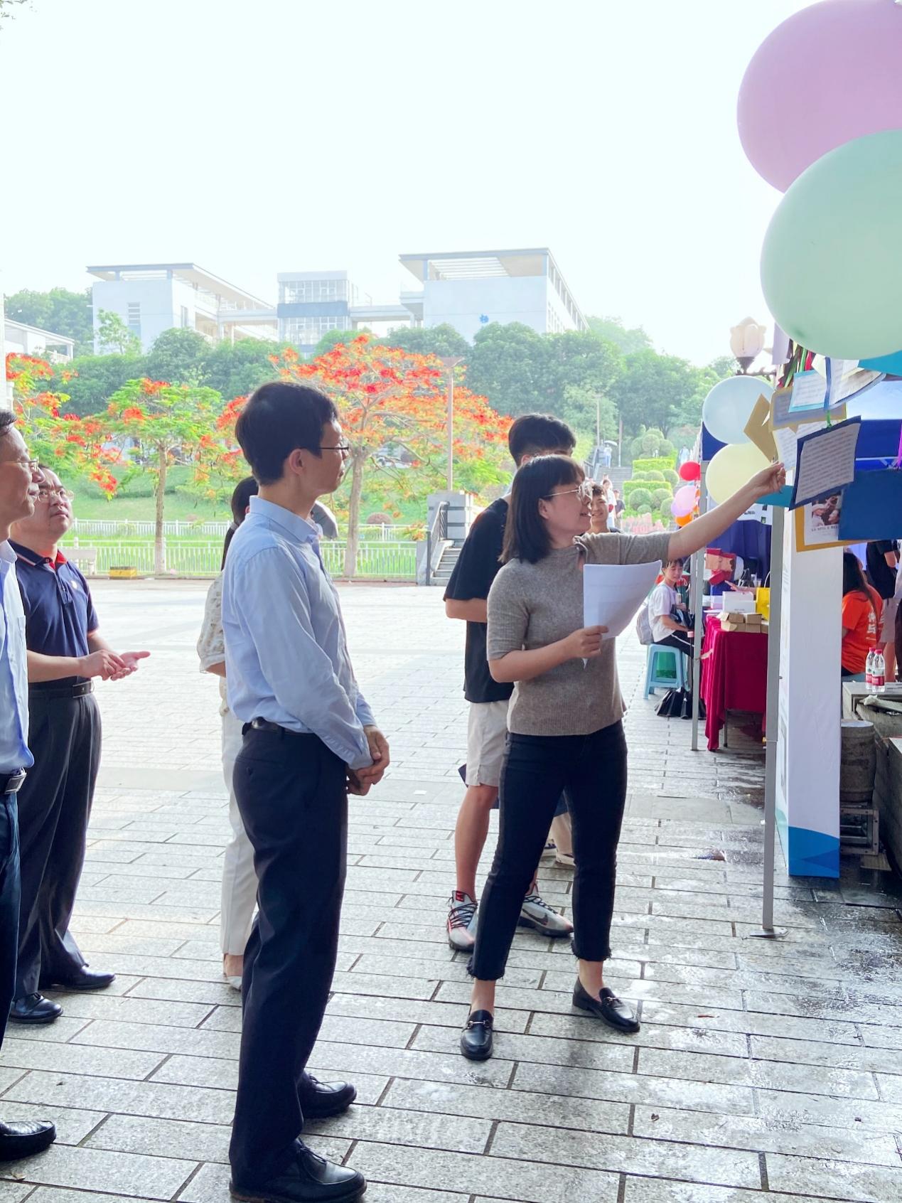 活动中,辅导员高结怡向到访的领导老师们介绍公司的心理相关工作的开展情况,以及摊位展示的心理知识,包括心理测试图、心理电影介绍、心理书籍和心理知识答题,她希望通过这种方式提高同学们对心理知识的兴趣,希望同学们主动了解心理学,利用心理学来帮助自己成长成才。朱立学参观后对公司摊位的活动形式表示赞同,并鼓励公司继续用活泼生动的方式去介绍心理学知识,帮助同学们减轻心理压力,更好地健康成长。
