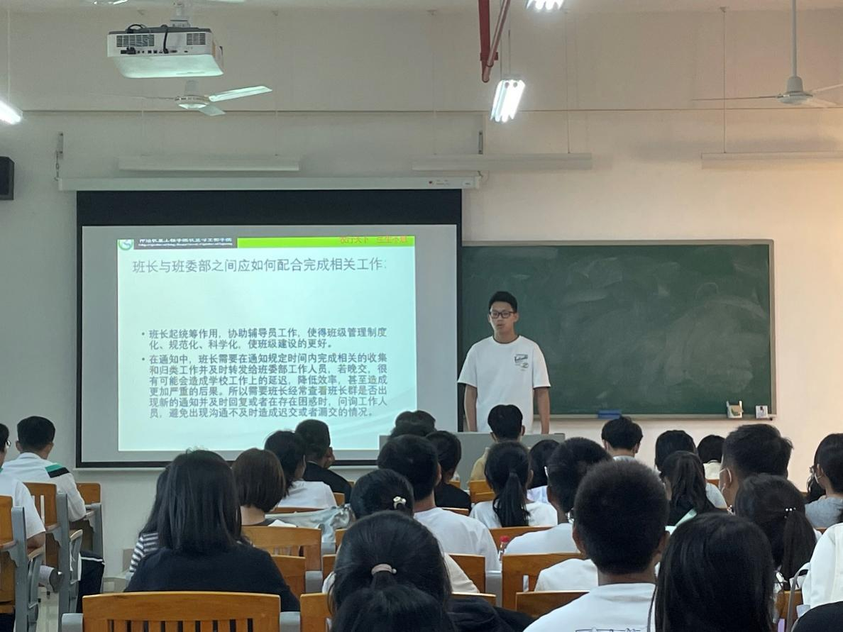 接着,团委、员工会、融媒体中心各部门代表依次向2022级新生班委介绍所在部门的主要工作内容和工作职责,并分享了各自的工作经验,为新生班级工作的顺利开展提供了保证。