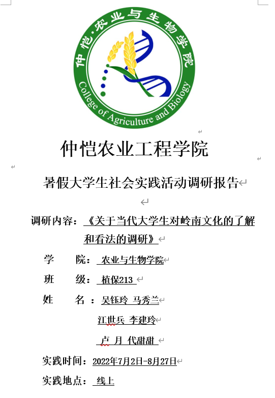 他们通过新时代青少年的独特思考角度进行问卷调研,指出对待身边的岭南文化缺少关注和重视这一个令人担忧的现象,对此小组希望通过本次调研活动让广大青年能够觉醒,重视历史,自发去关注岭南文化的发展,传承并弘扬深邃的岭南文化,共助岭南文化健康发展。