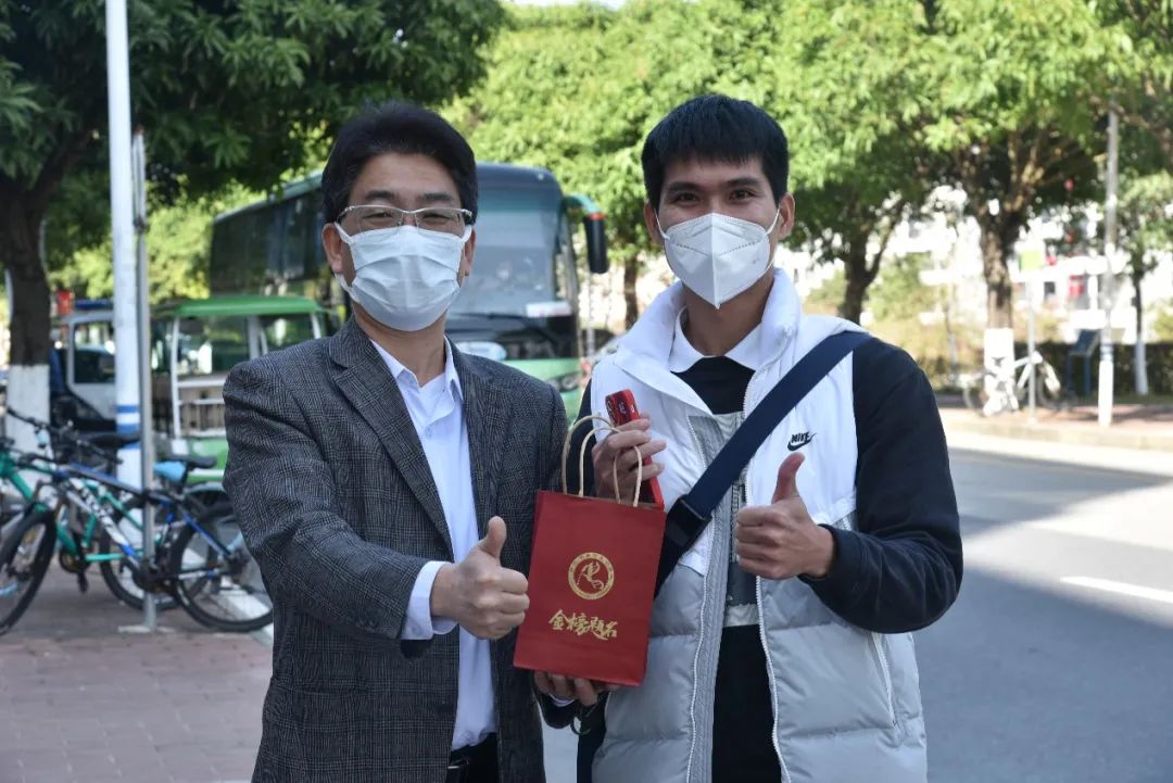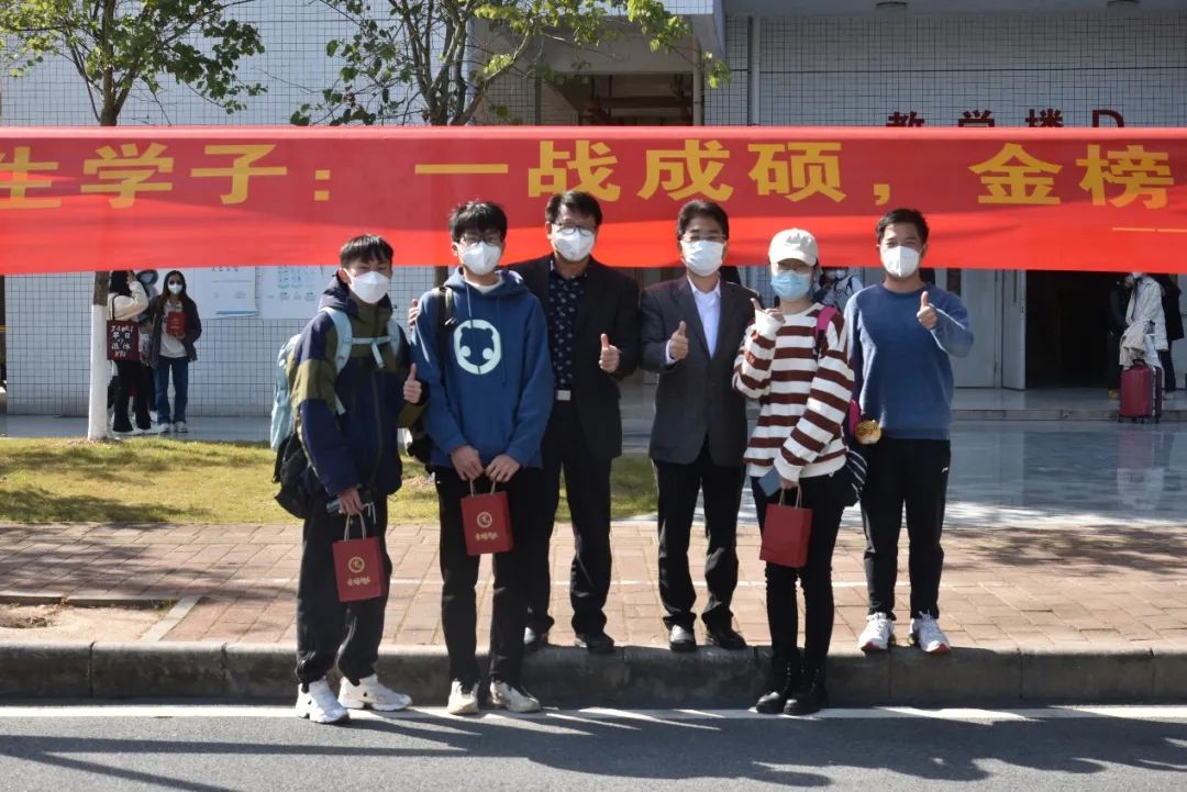 寒冬凛然而至,2023年全国硕士研究生招生考试在即,为帮助考研学子缓解备考压力,鼓舞士气,稳定心态,12月23日中午,农业与生物公司党委书记陈丹雄,党委副书记周超雄,辅导员苏登在白云校区综合教学楼门口一起为考研学子温暖送行。