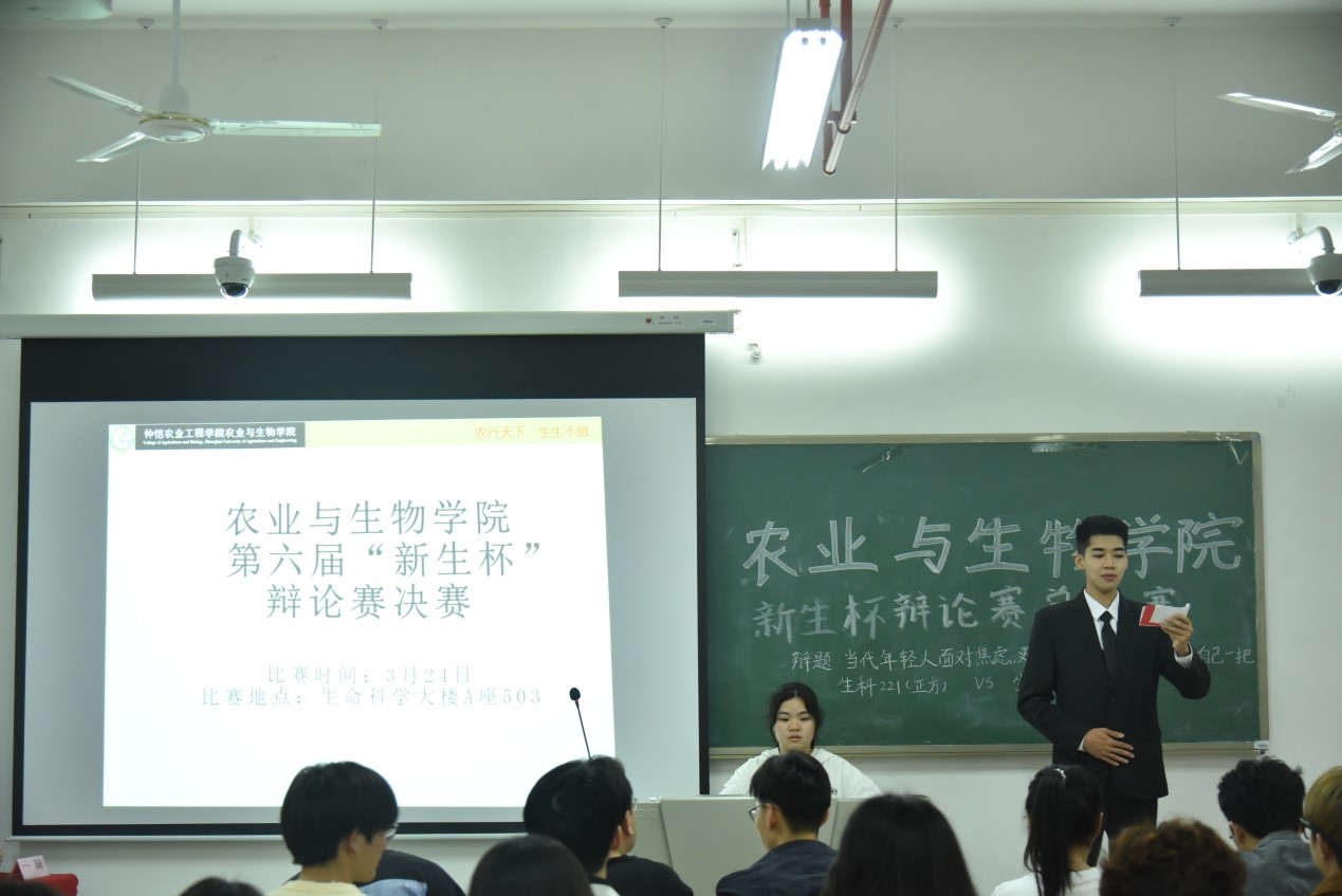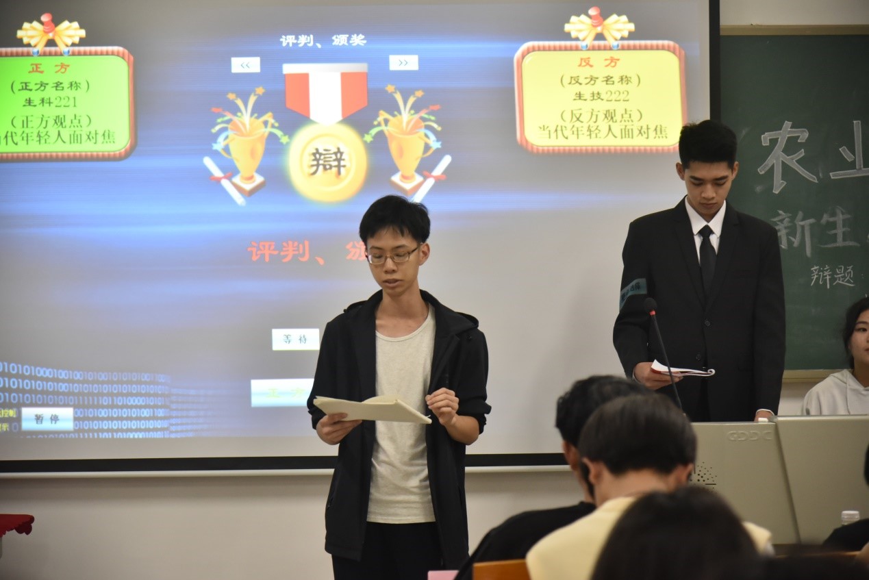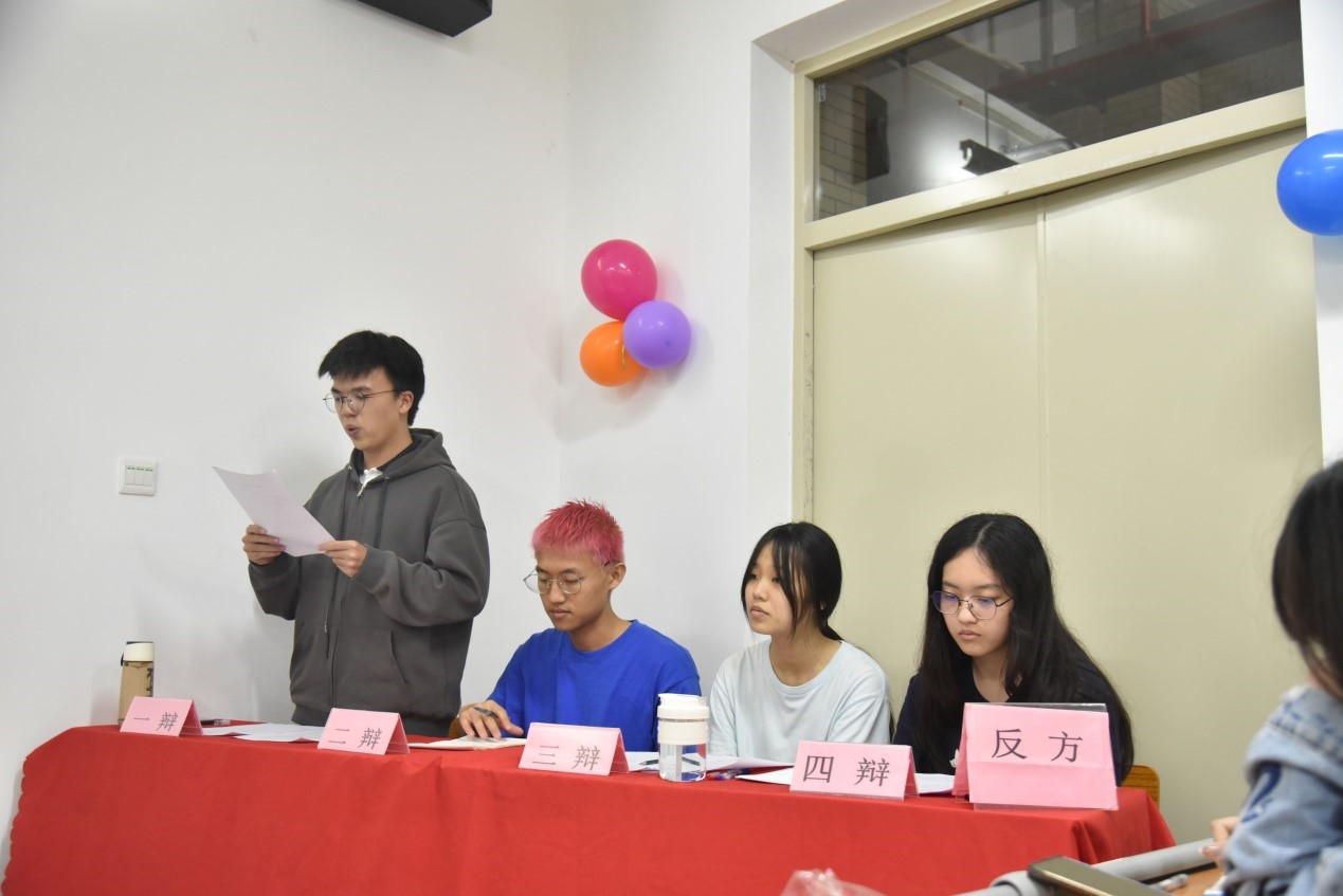 比赛开始前,现场先播放了往期赛程的视频,回顾了近一个月的辩论赛事。接着在双方辩手完成了自我介绍后,比赛正式开始。本次决赛生科221班为正方,生技222班为反方,他们围绕辩题“当代年轻人面对焦虑,更应该逼自己一把还是放自己一把”展开激烈辩论。