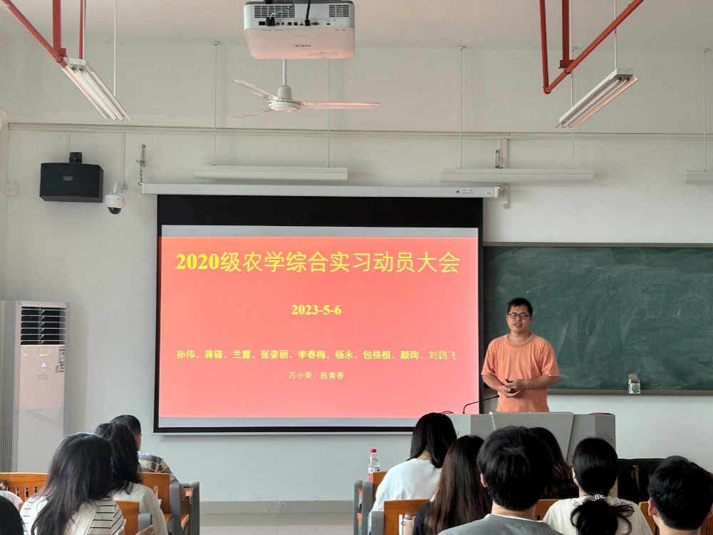 2023年5月6日上午,伟德bv1946官网农学系在生科楼A507教室召开了2020级综合实习动员大会。会议由系主任孙伟博士主持,万小荣教授、刘鹏飞教授、颜珣教授、陈青春副教授、蒋锋副教授、兰霞副教授、张姿丽博士、李春梅博士、包格根博士、毕业班班主任杨永博士和2020级全体毕业生参加了此次会议。