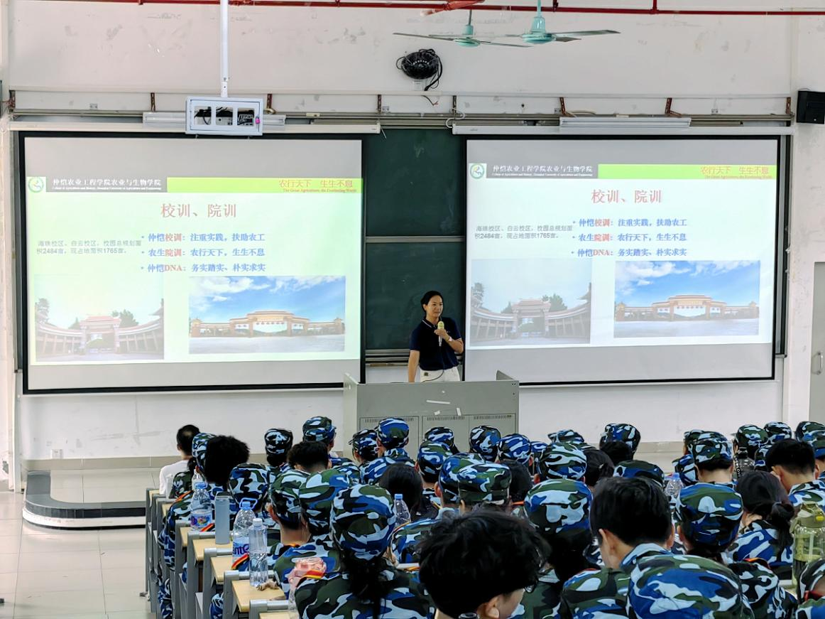 公司党委副书记张金凤给新生开展了爱校荣校专题教育,并从公司的发展历史、组织架构、招生规模、专业特色、本科和伟德bv1946官网的培养方向、师生人数以及近5年毕业生的就业升学等方面介绍了公司的总体基本情况,让新生们能更直观、全面地了解自己就读所在的公司。她向同学们生动讲解了校训和院训的深刻含义,希望农生学子都能谨记作为仲恺人“扶助农工”的初心和使命,牢记仲恺人“务实、踏实、朴实、求实”的为人处事风格。