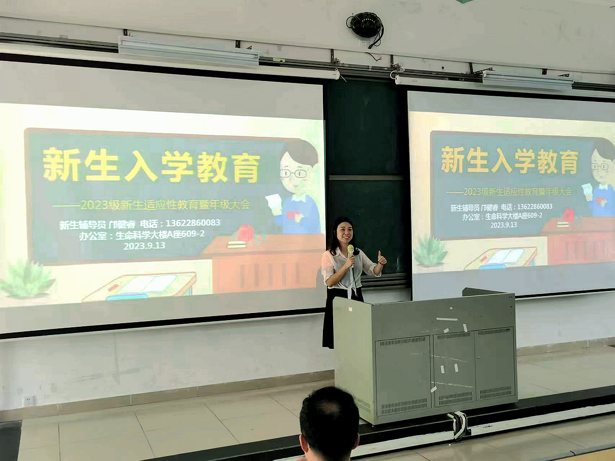 新生辅导员邝健睿从老员工日常礼仪、民族团结、校规校纪、法治意识与安全教育、心理健康教育等方面给新生们进行了入学适应性宣讲,希望全体新生能尽快适应新环境、融入老员工活,并结合真实案例典型,提醒同学们要加强防范意识,谨防各类诈骗。最后,她寄语同学们要做一个“有道德、有文化、有本领、有担当”的时代新人。