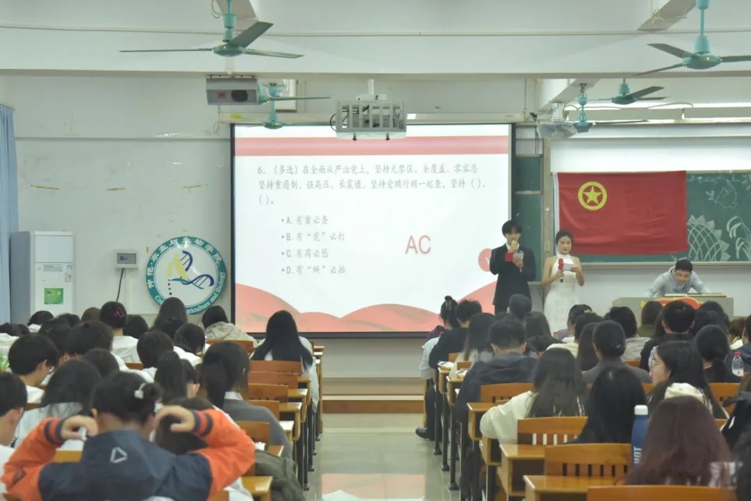 中场休息环节,开展了党团知识抢答小游戏,同学们跃跃欲试,积极举手回答,既展现了同学们对党对团的深入了解也充分体现同学们对党对团的热爱与拥护。