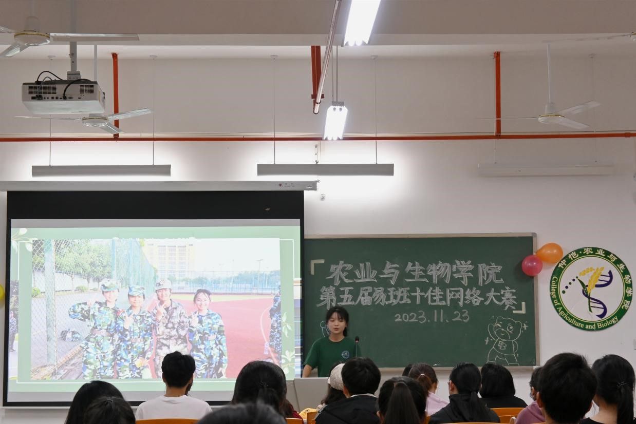 经过了初赛的激烈角逐,共有4个班级脱颖而出,顺利进入复赛。按照抽签顺序,各班代表逐一上台进行展示。他们以PPT演讲的形式分别从班级介绍、班徽班服设计理念、团建活动、易班平台建设等方面进行介绍,向评委与观众呈现了各个班级充满青春活力、团结友爱和热爱学习的良好氛围。各班借助易班平台,发布开会通知、投票、话题以及学习交流,记录每一次团建活动、班级聚会并上传照片,利用易班班群监督同学们学习情况、作业完成进度,促使同学们积极学习,共同进步。同学们也通过在易班平台上的频繁互动,在彼此交流中进一步加深了对班集体的了解和热爱。