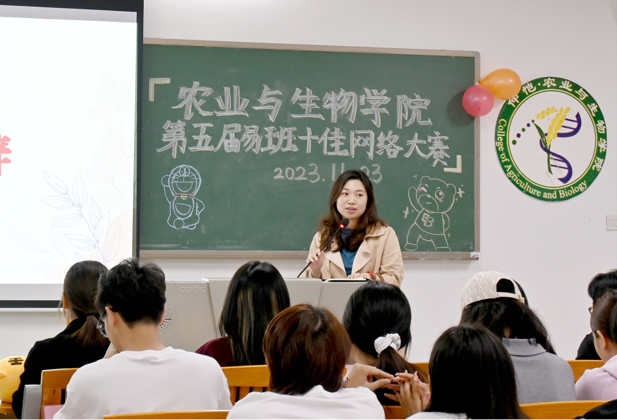 各班级展示完成后,邝健睿老师对比赛进行了点评和总结。她表示,每个班级各有优势和亮点,有的体现在班徽班服设计、有的体现在视频制作、有的体现在演讲风采、还有的体现在对易班平台的功能探索等等,每个班都充分展示了良好的班级风貌和团结协作的集体精神,希望同学们通过参加这个活动进一步加强班级建设,提高班级凝聚力,同时营造一个良好的网络文化环境和校园文化氛围。
