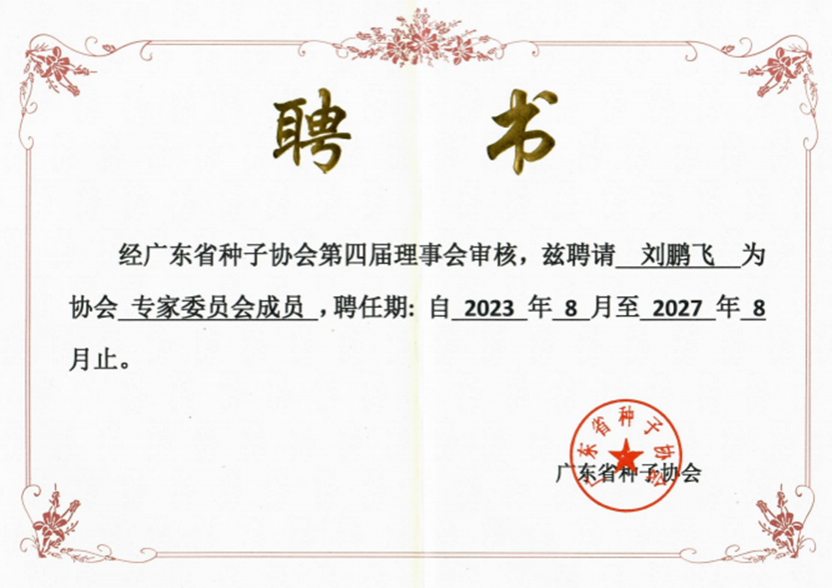 大会听取并表决通过了广东省种子协会第三届理事会工作报告以及修订后的章程,选举产生以广东省农业技术推广中心研究员林青山为会长的第四届理事会。广东省良种引进服务公司总经理郭少龙为执行会长,创世纪种业有限公司总裁黄涛等11人为副会长。会上,新一届理事会审议通过了法律顾问和专家委员会名单,公司刘鹏飞教授被聘选为广东省种子协会第一期专家委员会成员。