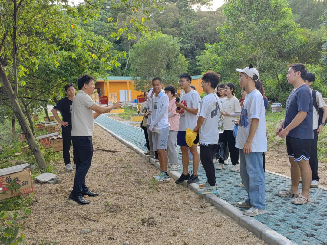 傍晚时分,实践队来到仙城镇梅径蜜蜂养殖研学基地参观学习。该基地立足地区实际需求,选择了投入少、见效快的微产业——蜜蜂产业,运用“基地+合作社+农户”的运营模式,不仅把农户手中的“蜜罐子”转化为“钱罐子”,而且带动当地产业的发展。