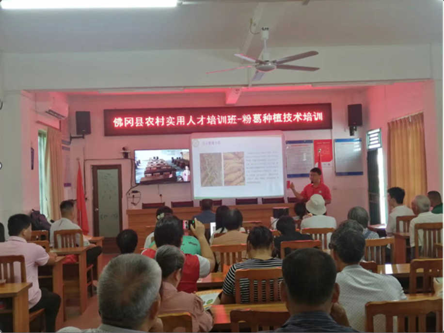 培训会上,喻国辉教授向参会者介绍了粉葛葛头腐烂病的症状、危害和发现规律,并讲解了如何识别该病害。他指出,要控制病害的发生,必须采取“预防为主,综合防治”的方法。同时,他还为农户讲解了各个发病时期的药物应用方法,并编制了一套易于记忆和理解的"顺口溜",以帮助农户更好地掌握粉葛葛头腐烂病的防控措施。