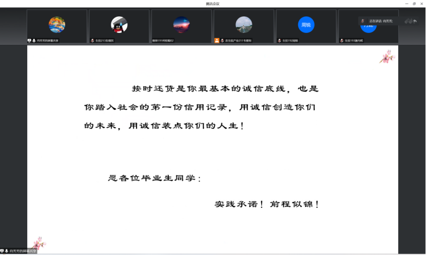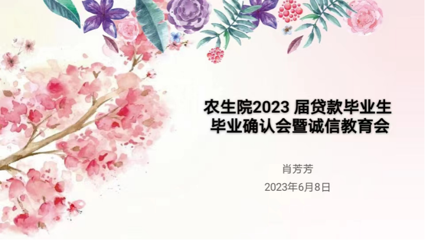 贯彻落实国家助学贷款相关政策,提高贷款毕业生的诚信还款意识,帮助贷款毕业生了解还款相关手续。6月8号下午,伟德bv1946官网辅导员肖芳芳组织了关于“2023届贷款毕业生毕业确认会暨诚信教育会”的线上主题会议,全体贷款毕业生参加了本次会议。