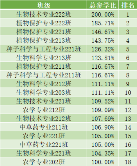 以下的班级参与率已有较大的提升