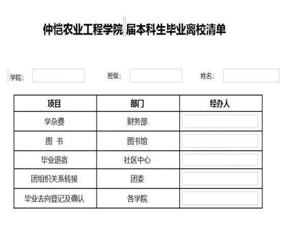 待所有环节完毕后,系统自动生成本科生毕业离校清单。毕业生需在毕业离校清单空白处签名并将其交至毕业班辅导员。