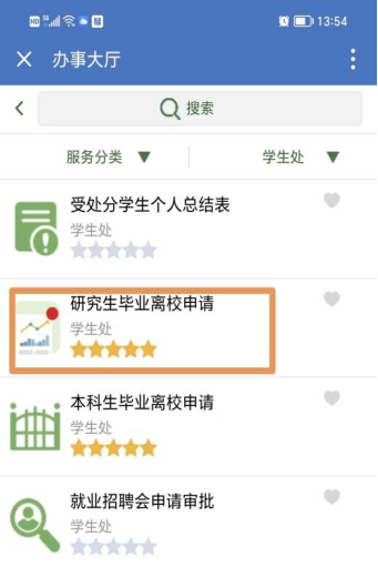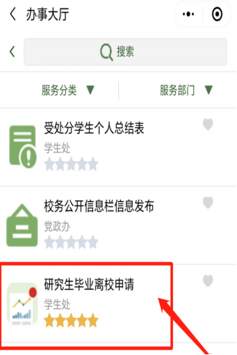 第三步:点击“员工处”标签,或直接在“搜索您想找的事宜”搜索框,搜索“研究生毕业离校申请”;