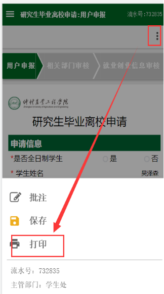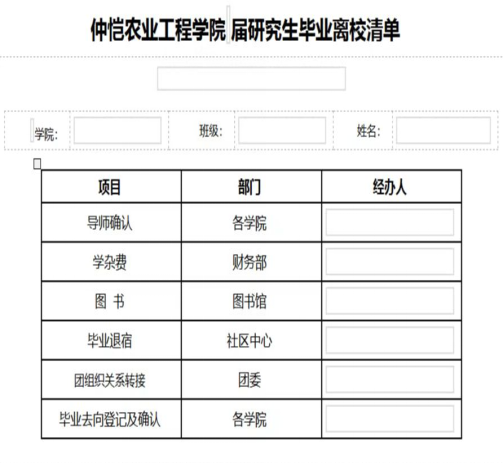 待所有环节完毕后,系统自动生成研究生毕业离校清单。员工需在毕业离校清单空白处签名并将其交至毕业班辅导员。