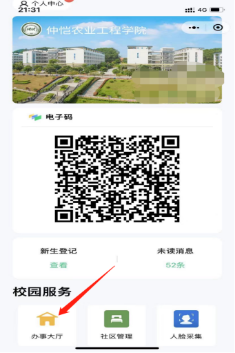 第二步:进入“仲事易”小程序,点击进入“办事大厅”;