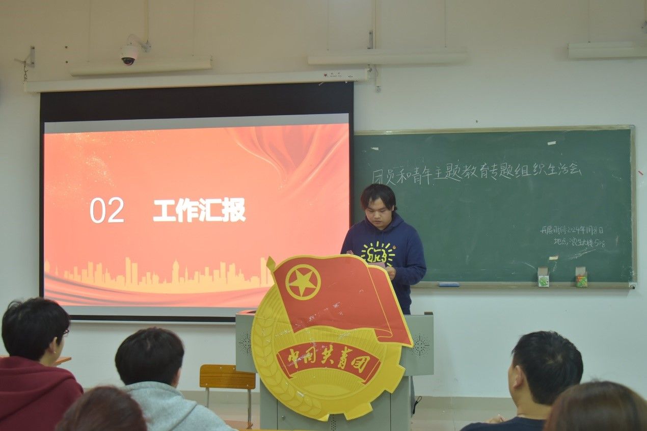 团支部书记唐果报告2023年团支部开展团员和青年主题教育开展情况及成效,通报团支部委员查找不足等情况,展望团支部2024年的工作计划。
