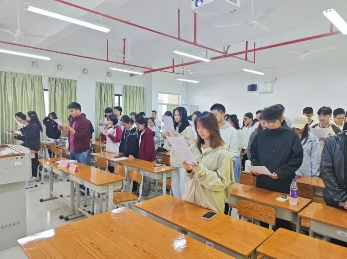 接着,全体师生共同跟随教育部“宪法晨读”官方直播朗读了宪法节选内容。通过诵读宪法,让师生们对宪法有了更深入的理解和认识,明白了宪法赋予公民的权利与义务,也更加懂得了在日常生活中要自觉遵守宪法、维护宪法权威,有助于培养员工的法治观念和规则意识,为员工们未来步入社会、成为守法公民奠定了坚实的基础。