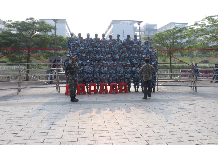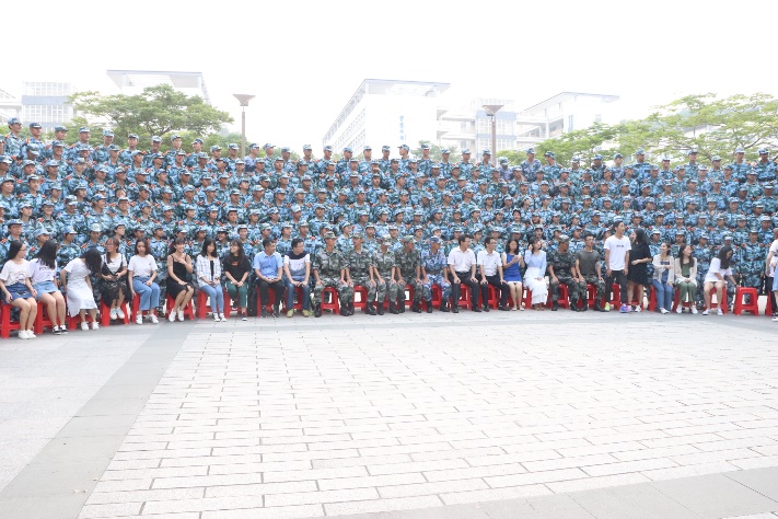 汇演结束后,同学们在各自教官的带领下有序地来到了澳门桥前的空地进行军训合照的拍摄,同时出席拍摄的还有公司的各位领导,新生班主任以及助理班主任。各个连队的同学们整齐有序地排好队,以连队为单位逐个进行拍摄,并在连队拍照结束后进行全院集体合照的拍摄。