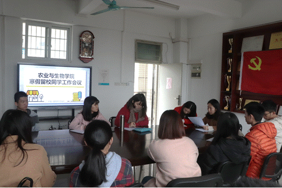 1月16日上午,公司于刘宇新楼425室举行了寒假留校同学工作会议。辅导员周静静、王汝婷出席会议,寒假期间留校同学参加会议。会议由周静静主持。