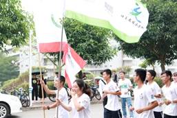 摆摊期间,摊位现场人来人往,气氛十分活跃。摊位上悬挂的照片引来许多同学驻足观看,队员们认真地为同学们介绍图片内容,讲解在阜沙镇实践调研过程的情景。摊位上的小游戏吸引了前来参观成果展的同学们,同学们积极参与游戏并赢得了精美的小礼品。中午时分,公司员工高举公司旗帜,与其他公司的同学一起开始了校园内环跑,同学们高呼“农行天下,生生不息”的口号,展现出农生学子一腔热血与无限活力。