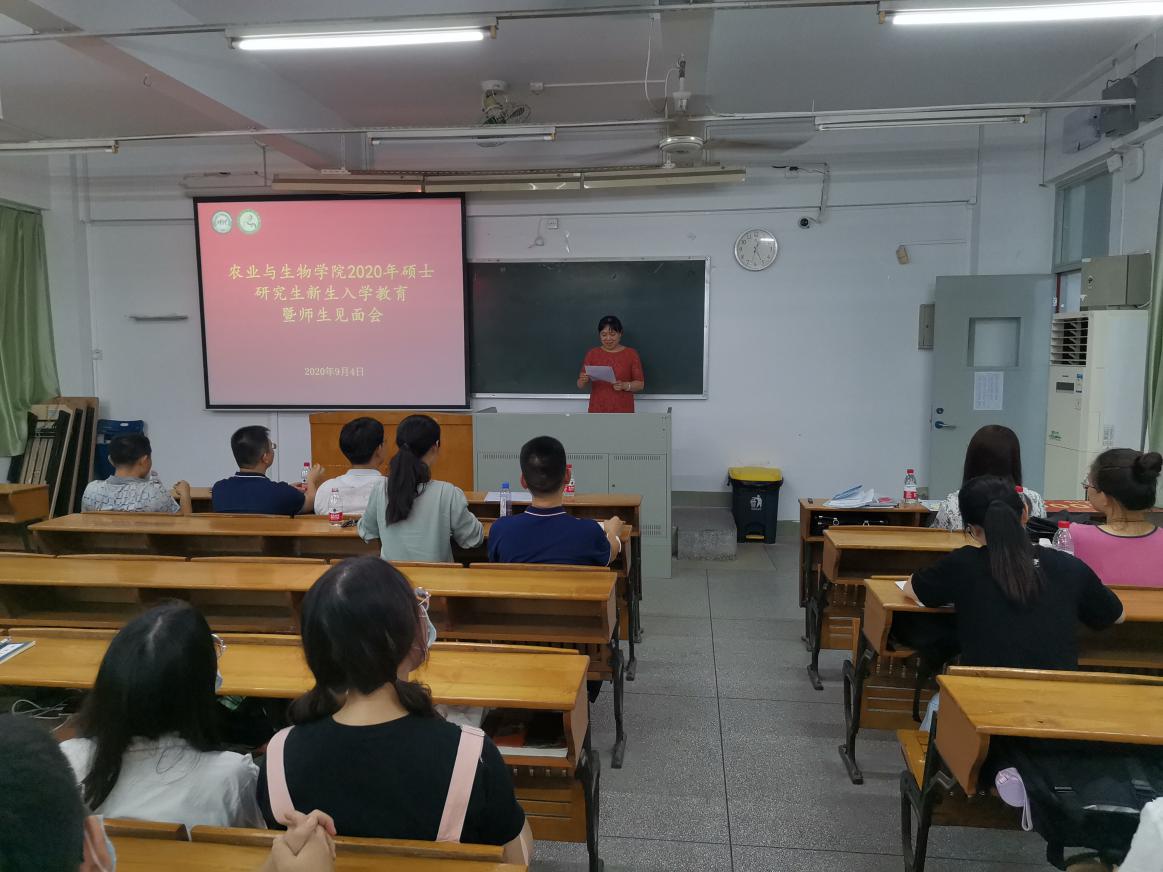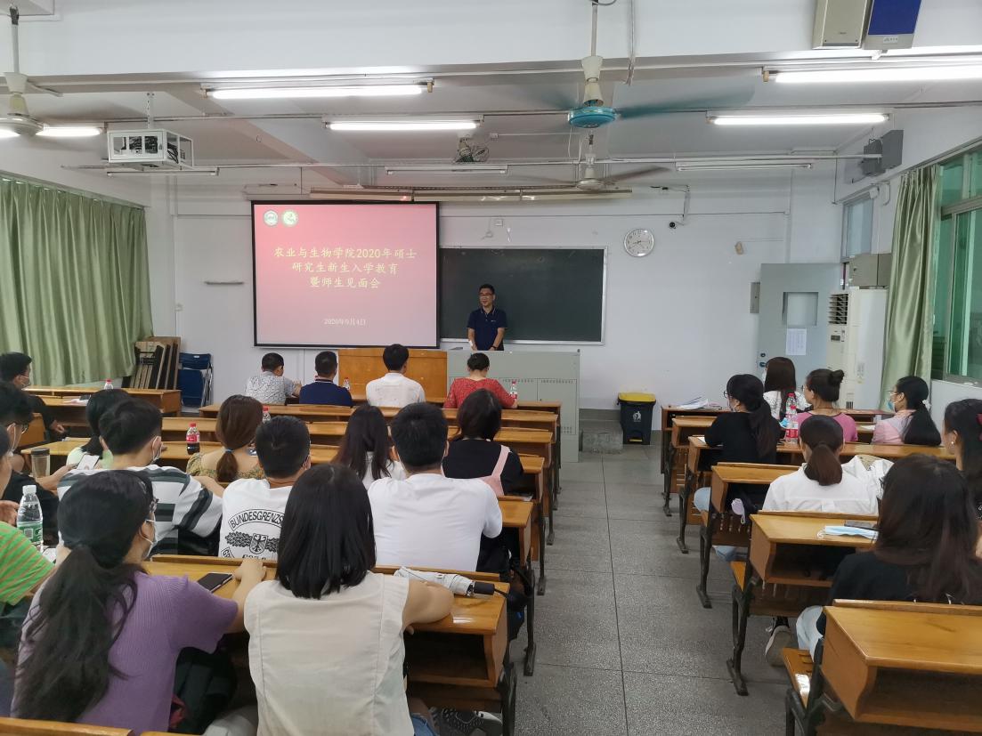 94日下午,伟德bv1946官网在海珠校区教学楼609举行2020级研究生新生入学教育暨师生见面会。公司领导、导师代表、班主任、广东嘉美好生态科技有限公司副总经理方佳煜和2020级全体研究生新生参加会议。会议由公司党总支副书记周超雄主持。