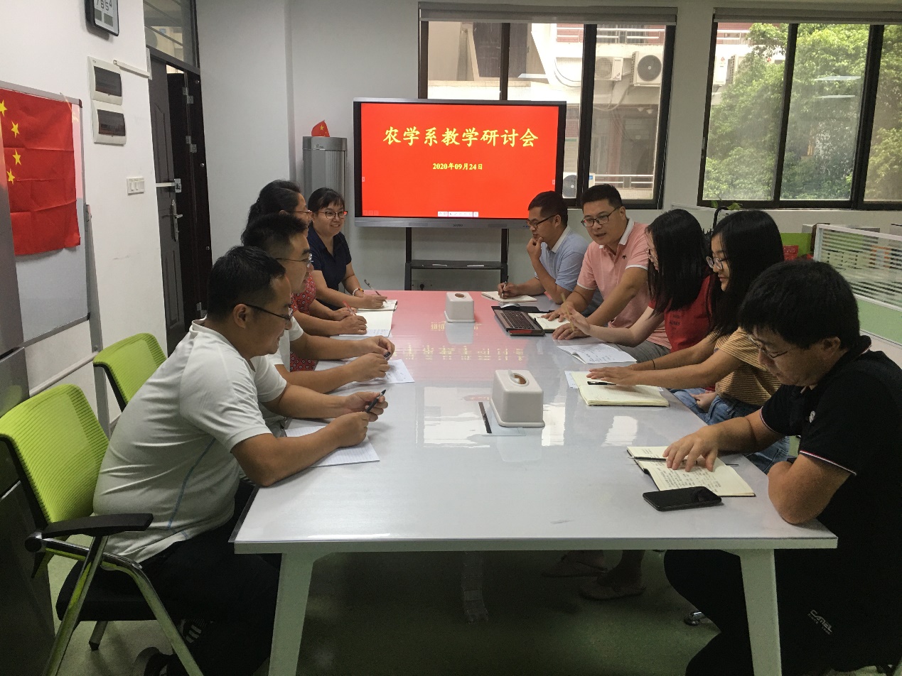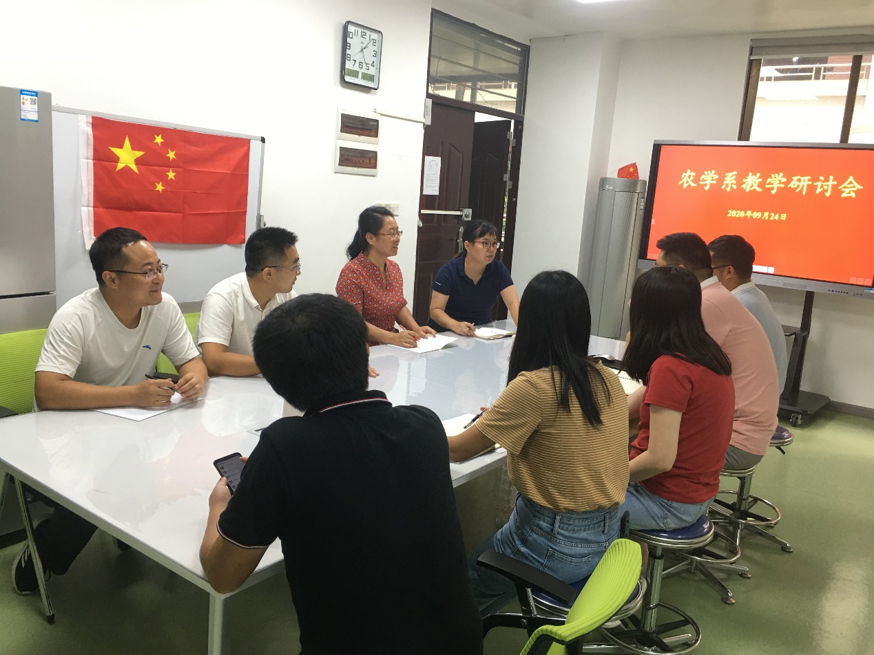 为了更好地凝聚力量开展新学期工作,农学系于2020年9月24日下午在英东楼215召开了农学系新学期教学研讨会,农学系全体教师出席会议。会上,系主任陈青春副教授首先就农学系目前教研情况做了总结,随后就本学期教学工作做了认真部署,主要包括教学资料准备、课堂管理;线下教学、线上课程建设;教学法研讨和项目申报;教师访学培训等方面。