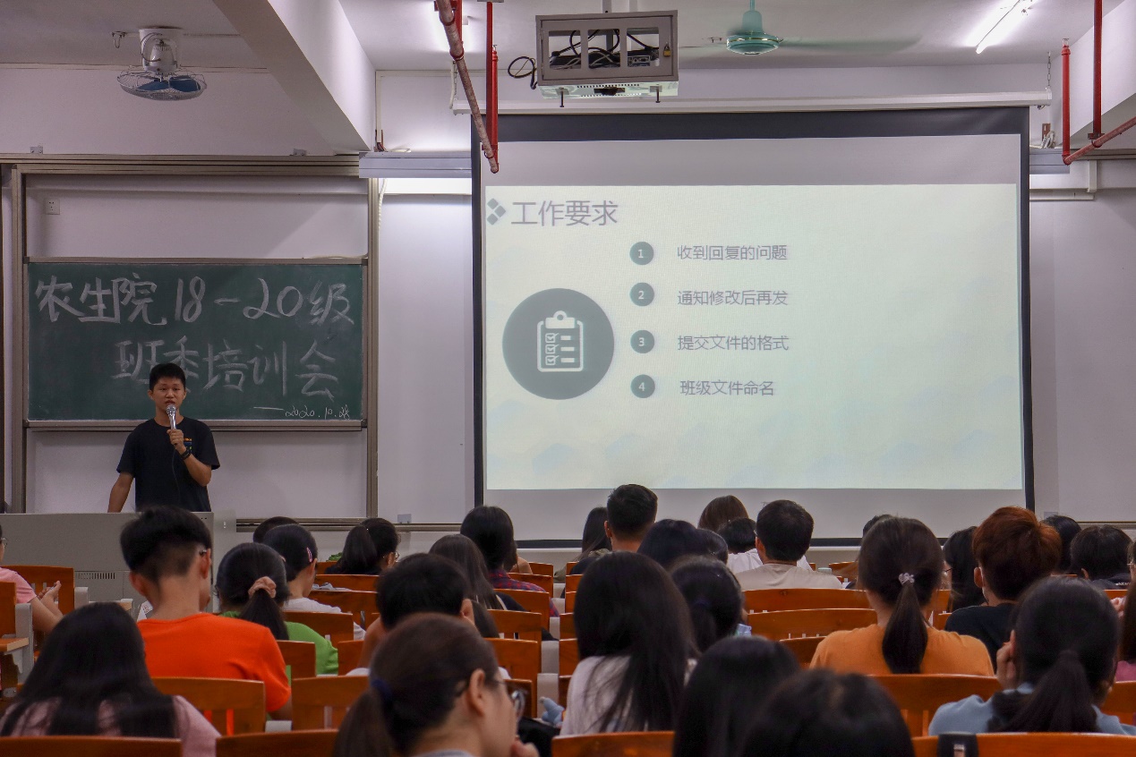 在612教室,农学181的梁华霞同学作为学习委员代表发言,她向学委提出了三点建议:首先要做到及时沟通交流,关于学习方面的问题要及时向老师和同学沟通交流。其次要做好榜样示范,学委在学习上应起到带头作用。最后要牢记工作职责,学委的工作关乎到整个班集体的学习,对待工作都一定要认真负责。