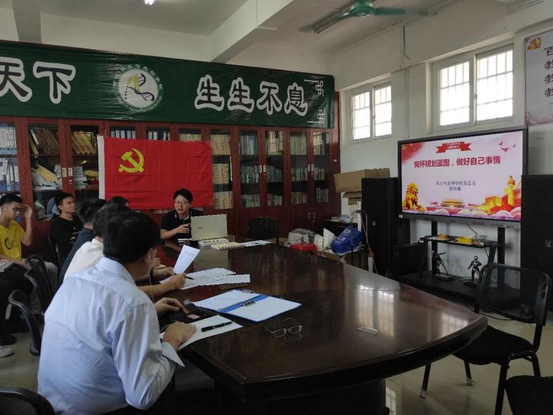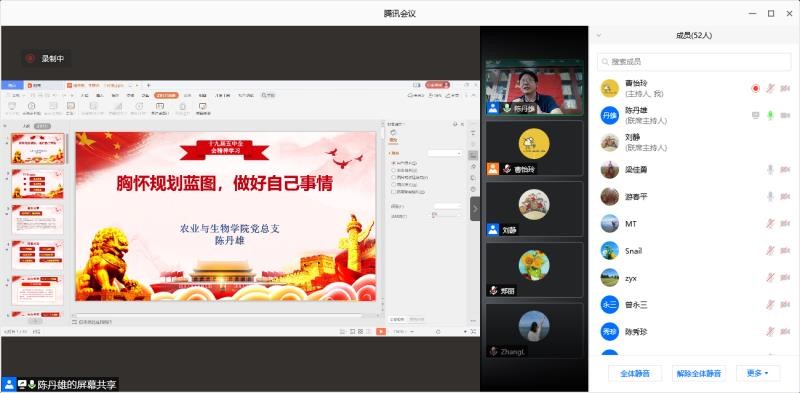 为深入学习贯彻党的十九届五中全会精神,将思想和行动统一到全会精神上来,11月5日下午,伟德bv1946官网组织全体教工党员及员工党员在刘宇新楼425会议室及腾讯会议平台,以“胸怀规划蓝图,做好自己事情”的为主题学习十九届五中全会精神。本次党课由党总支副书记周超雄书记主持,党总支书记陈丹雄主讲。