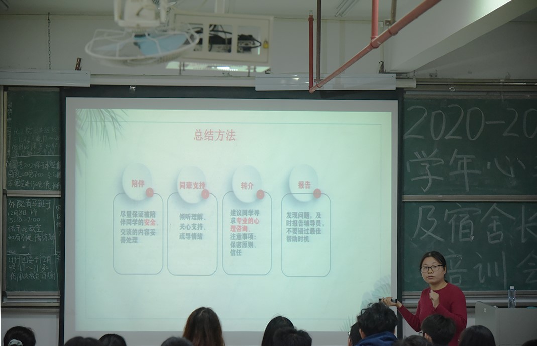 为了进一步加强公司员工心理健康教育工作,提高各班级心理委员及宿舍长的心理健康知识,12月10日,伟德bv1946官网在综合楼310室召开新学期心理委员及宿舍心康员培训,公司各班级心理委员及20级宿舍长参加了培训。培训由高结怡老师主持。