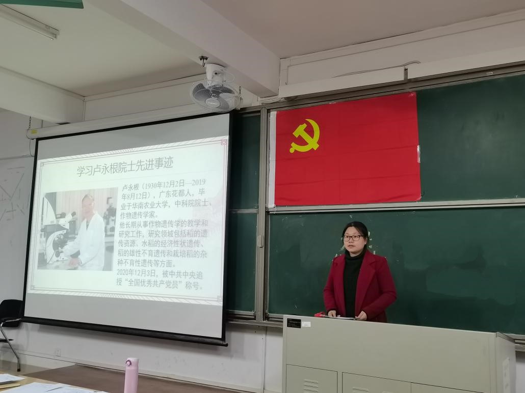 最后,由高结怡对本次学习会进行总结。她强调,作为一名农生院的员工党员,应向卢院士一样,将赤诚爱国之心奉献给祖国,心系国家发展需求,全心全意的奋斗在祖国最需要的地方,要坚定理想信念,牢记强农兴农的使命,把学好专业知识作为第一要务,努力提高自己的知识水平,利用学科知识来发展农业现代化,为实现社会主义现代化强国的目标贡献一份力量。