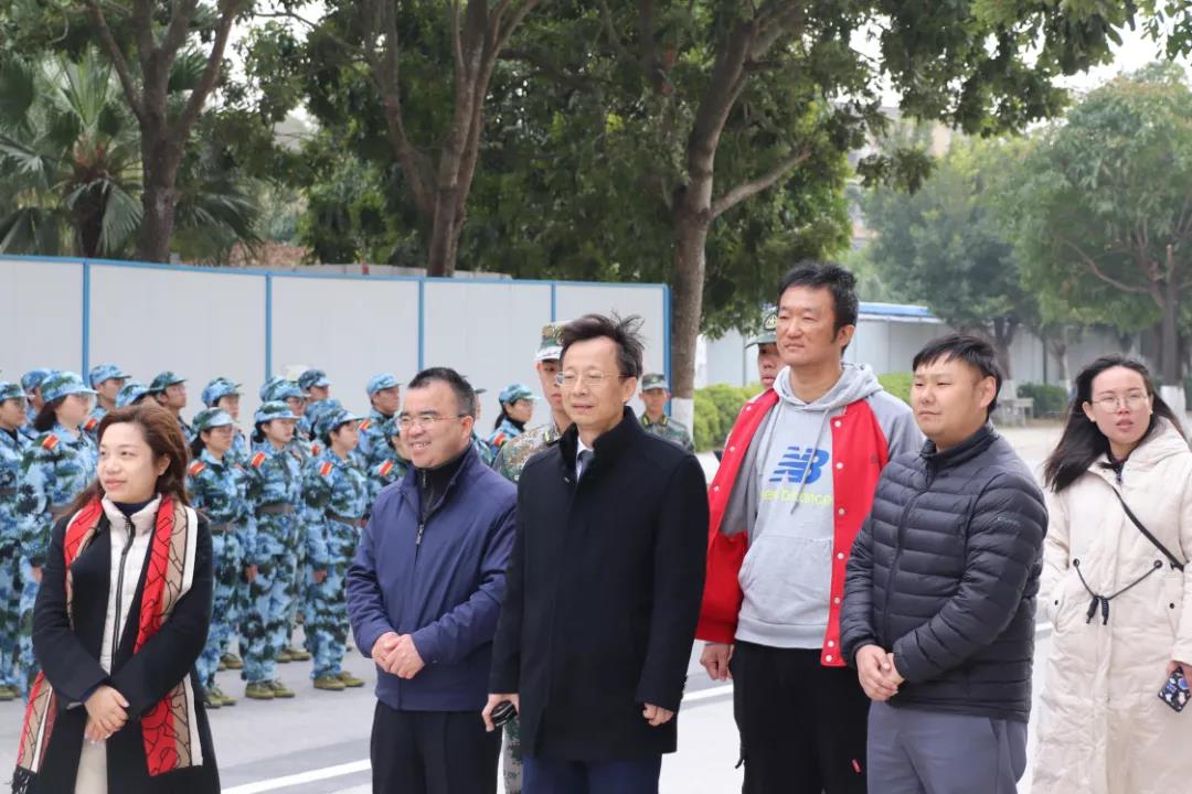 1月17日上午,校员工工作部(处)、人民武装部(处)长李伟东一行到白云校区视察全体新生进行军训。